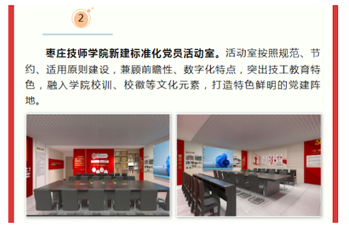 12月12日,《枣庄组工》公众号刊发了《枣庄市基层党建工作11月份盘点》,我院打造标准化党员活动室项目入选全市党建重点亮点工作。今年以来,学院党委把标准化党员活动室建设作为提升基层党组织凝聚力、强化政治功能的重要抓手,按照规范、节约、适用原则,兼顾前瞻性、数字...